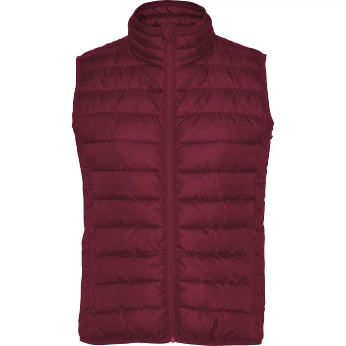 Gilet sans manches femme matelassé OSLO WOMAN grenat 290 g/m², composé pour l'extérieur en 100% polyester, 300T, la doublure en 100% polyester avec ouate 100% polyester, touché plume. Gilet matelassé pour femme avec rembourage léger et chaud, fermetures éclairs ton sur ton, deux poches zippées devant, doublure intérieure contrastée, liserés élastiques ton sur ton dans le bas, inclus sac de transport comme un vêtement léger et pliable. Coupe ajusté. Le gilet sans manches femme matelassé OSLO WOMAN grenat est vendu à l'unité mais bénéficie de tarifs dégréssifs par quantité et peut être personnalisé en option. Le gilet sans manches femme matelassé OSLO WOMAN grenat à l'unité