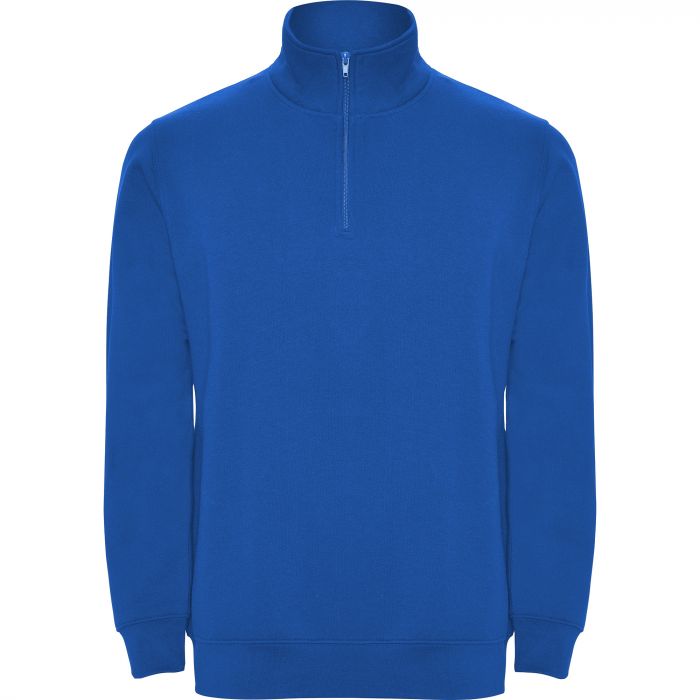 Sweat-shirt homme demi zip ANETO bleu royal, 280 g/m² composé de 50% coton / 50% polyester. Sweat avec demi zip ton sur ton et col montant. Intérieur du cou même tonalité. Bande de propreté renforcée à l’intérieur du col. Poignets et ceinture en côte 1x1. Le sweat-shirt homme demi zip ANETO bleu royal est vendu à l'unité mais bénéficie de tarifs dégressifs par quantité et peut être personnalisé en option. Le sweat-shirt homme demi zip ANETO bleu royal à l'unité