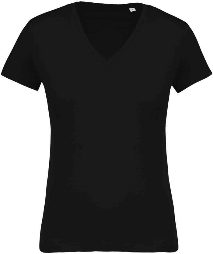 T-shirt femme coton bio col V K396 - Black composé de 100% coton biologique certifié OCS100 contrôlé par Ecocert Greenlife (Wine Heather, Ocean Blue Heather et French Navy Heather : 80% coton biologique / 20% polyester OCS Blended contrôlé par Ecocert Greenlife ; Grey Heather : 70% coton biologique / 30% viscose OCS Blended contrôlé par Ecocert Greenlife). Encolure V en bord-côte. Bande de propreté encolure ton sur ton. Finition double aiguille bas de manches et bas de vêtement. Pas d'étiquette de marque au col, uniquement une puce de taille pour faciliter la personnalisation. L'article T-shirt femme coton bio col V K396 - Black bénéficie de tarifs dégressifs par quantité et peut être personnalisé en option